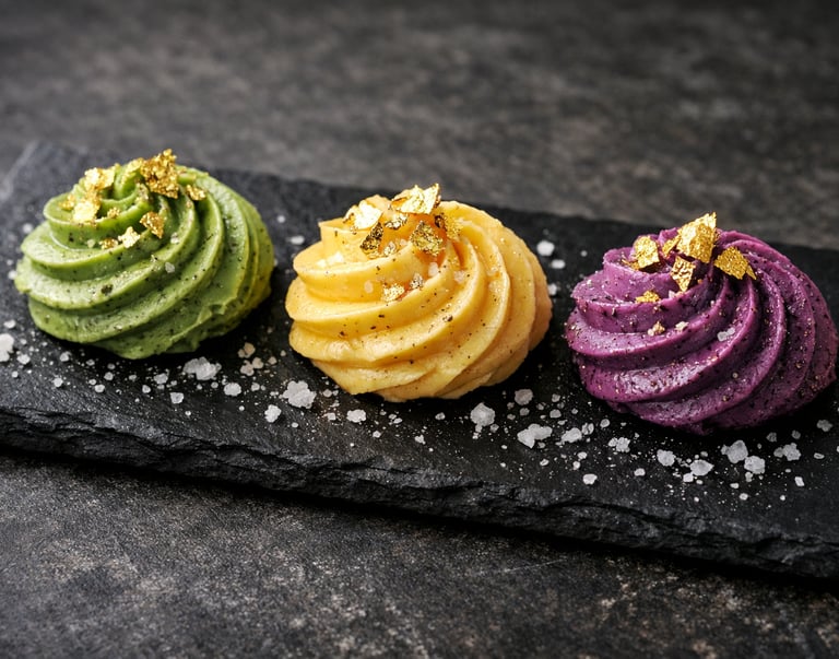 A curated flight of butters designed to finish the meal differently. Lightly sweet, unexpectedly nuanced, and crafted to pair with fruit, pastry, cakes, chocolate, or on their own—this is dessert without the heaviness.